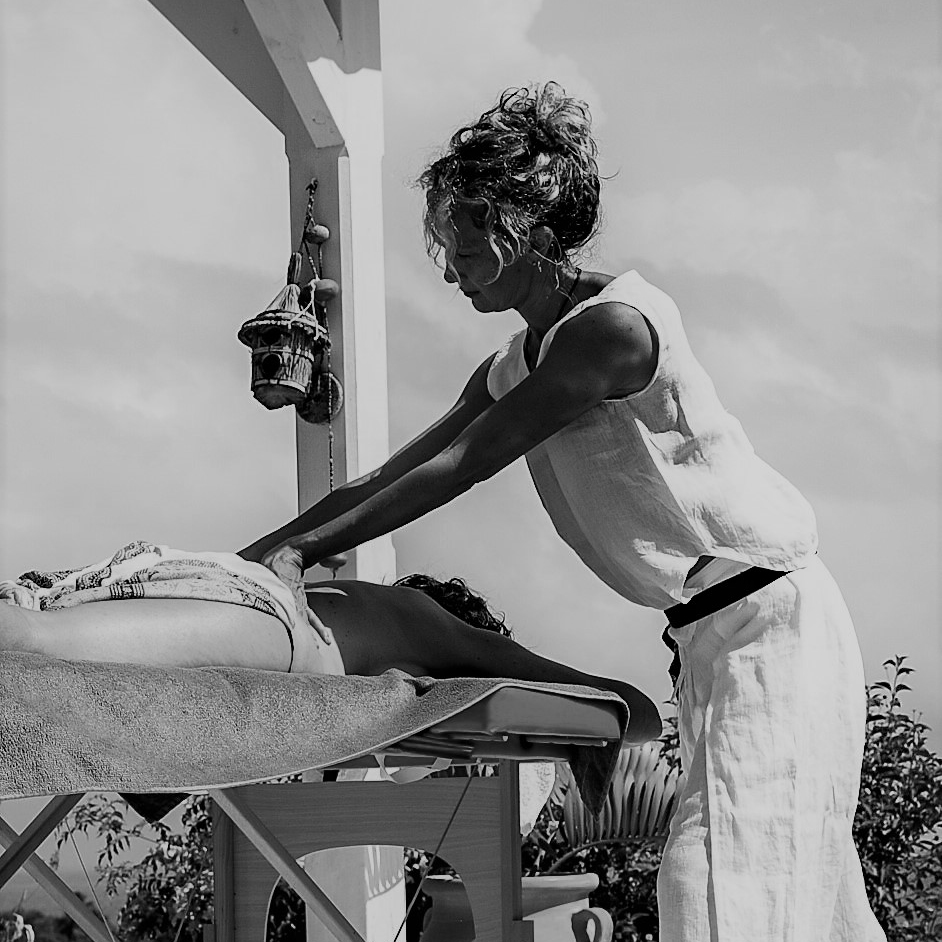 - Soin aux Plantes Locales – Tradition Caribéenne : Massage utilisant huiles et cataplasmes de plantes locales bio, cultivées et préparées par mes soins. Inspiré des techniques traditionnelles caribéennes, ce soin soutient la circulation, libère les tensions et aide à débloquer les zones contractées, tout en respectant les propriétés ancestrales des plantes.